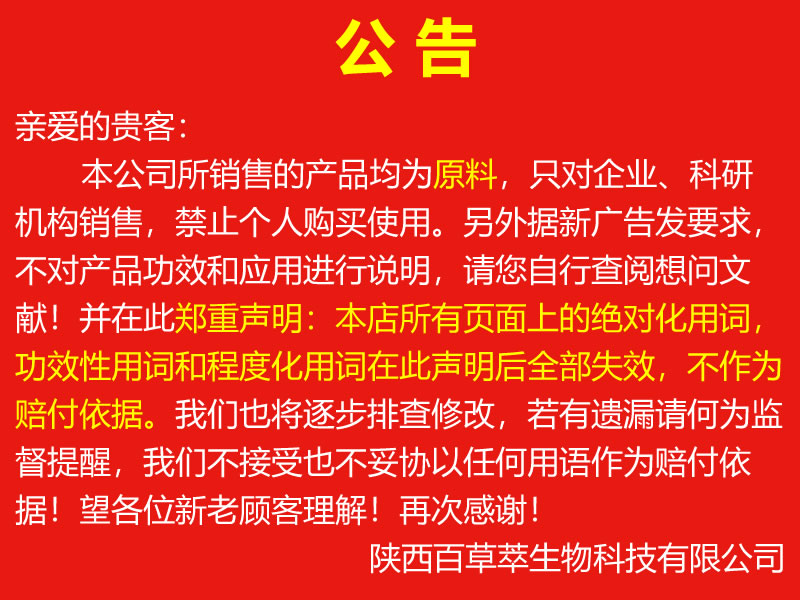 陜西百草萃生物科技有限公司,位于陜西省咸陽市秦都區(qū)濱河西路1號大秦御港城,公司成立于1996年,主要從事天然植物種植、研發(fā)、生產、加工、銷售為一體的高科技企業(yè)。主營醫(yī)藥原料、保健品原料、化妝品原料,精細化工原料。公司致力于人類健康保護事業(yè)“ 以科技為動力,以質量求生存” 的本質,依托陜西高新科技技術人才和科研優(yōu)勢,已形成多學科、全方位、高層次的技術管理精英團隊。充分利用秦巴山區(qū)的天然藥物資源,歷經多年發(fā)展為打造百草萃生物品牌奠定了基礎。